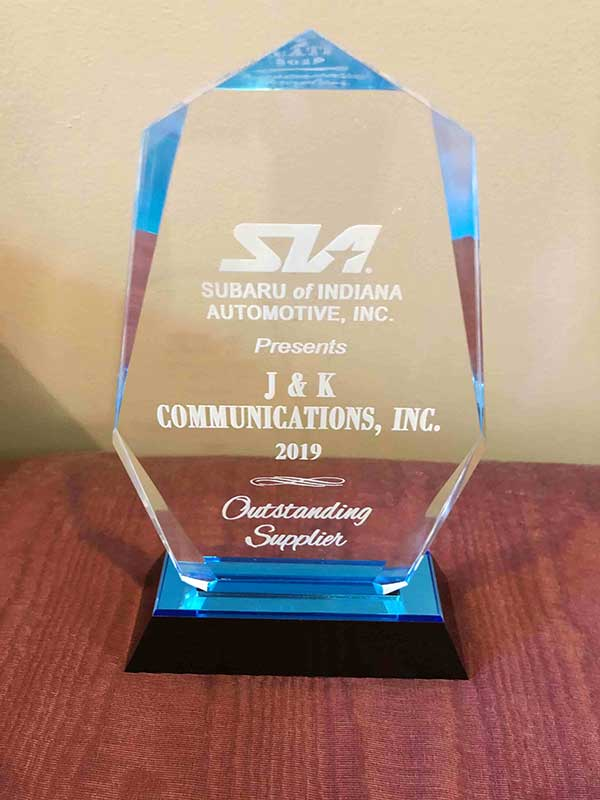 J&K Communications, Inc. was recently awarded for being an outstanding supplier for Subaru of Indiana Automotive, Inc in 2019. By delivering products in a timely manner, ensure accurate orders, and providing the quality service that all of our customers receive, our Indianapolis office was awarded with the Outstanding Supplier award. This honor was given to our Indianapolis office on behalf of their efforts to ensure customers get the best of what we have to offer. It is our daily mission to provide this type of exemplary service to all of our customers, and by following our founding principles, we are able to make this a staple of J&K.